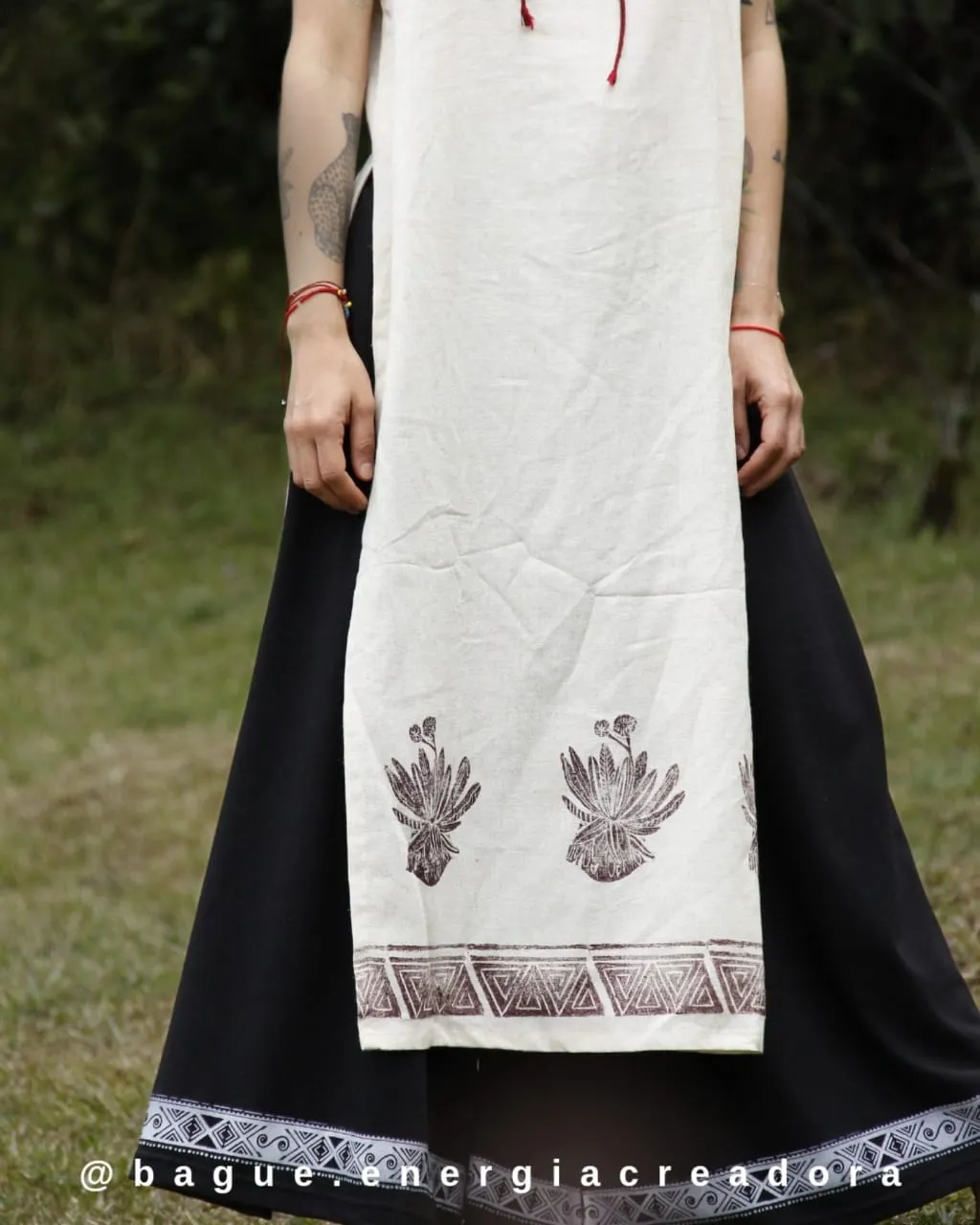 Artesanía Única: Su estampación es manual con sellos tallados por nosotras, utilizando tintas a base de agua, impregnando el diseño de profundo significado.