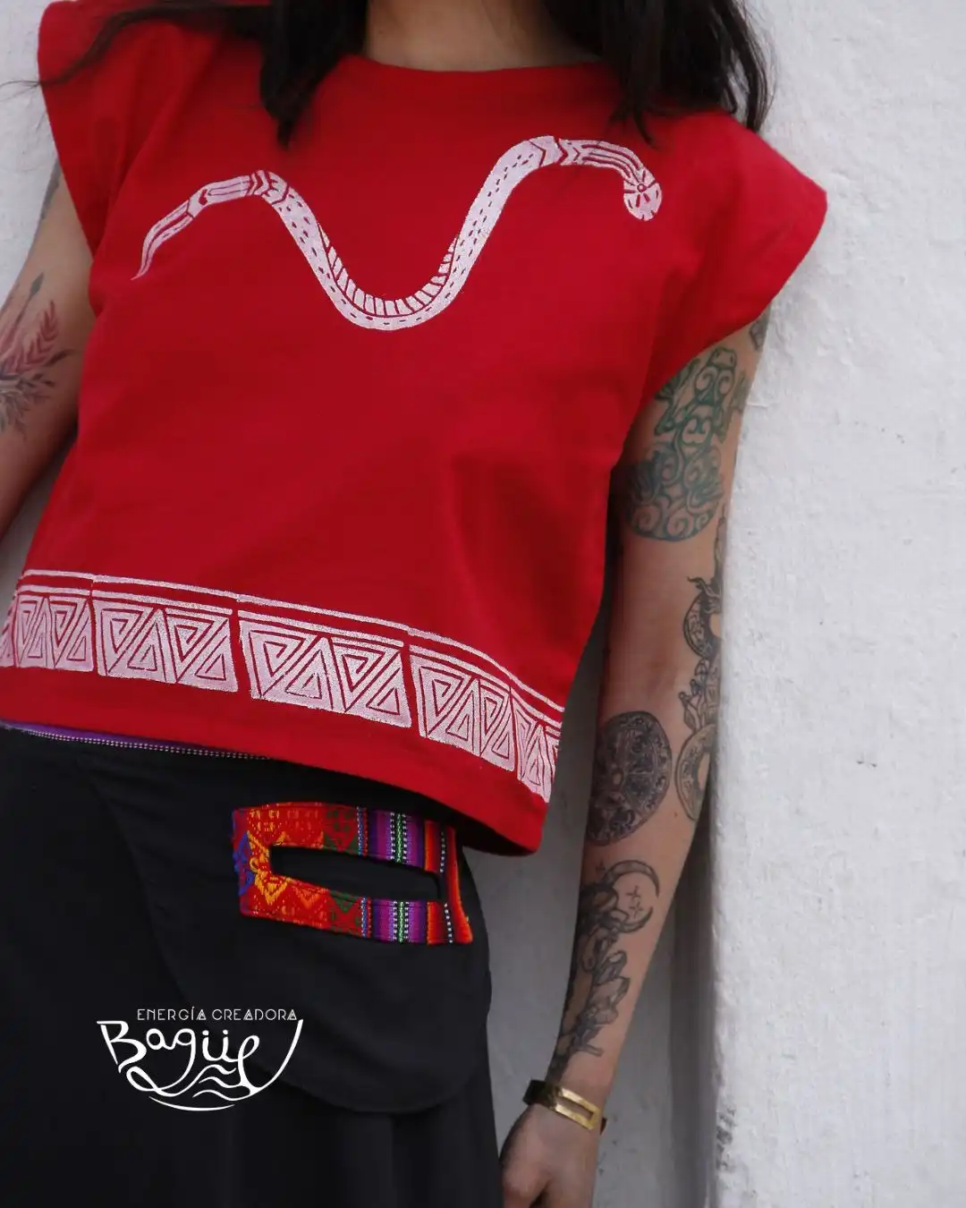 Descubre la Blusa Serpiente, una prenda de poder con un profundo simbolismo. La simbología de la Serpiente y la doble espiral evoca la habilidad de ir adentro y afuera con fluidez y dignidad, integrando la fuerza interior.