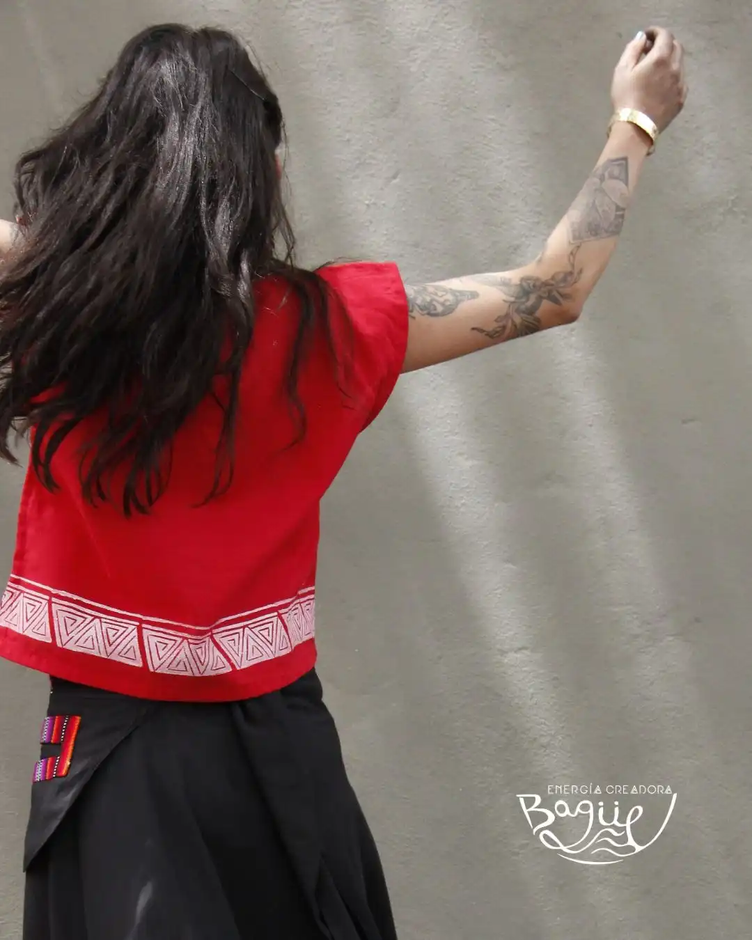 Diseño Consciente: Creada bajo el principio de Cero Residuos (0 RESIDUO), minimizando el desecho textil al 3% en su producción. La blusa está elaborada con fibra 100% natural.