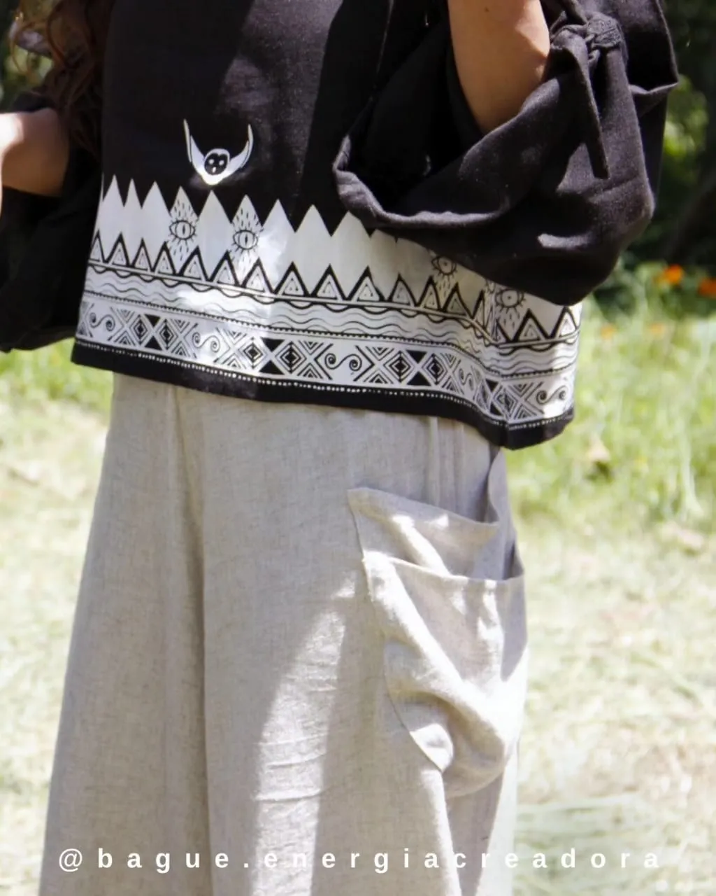 Artesanía Única: Su estampación es manual, utilizando tintas ecológicas a base de agua, impregnando el diseño de significado.
