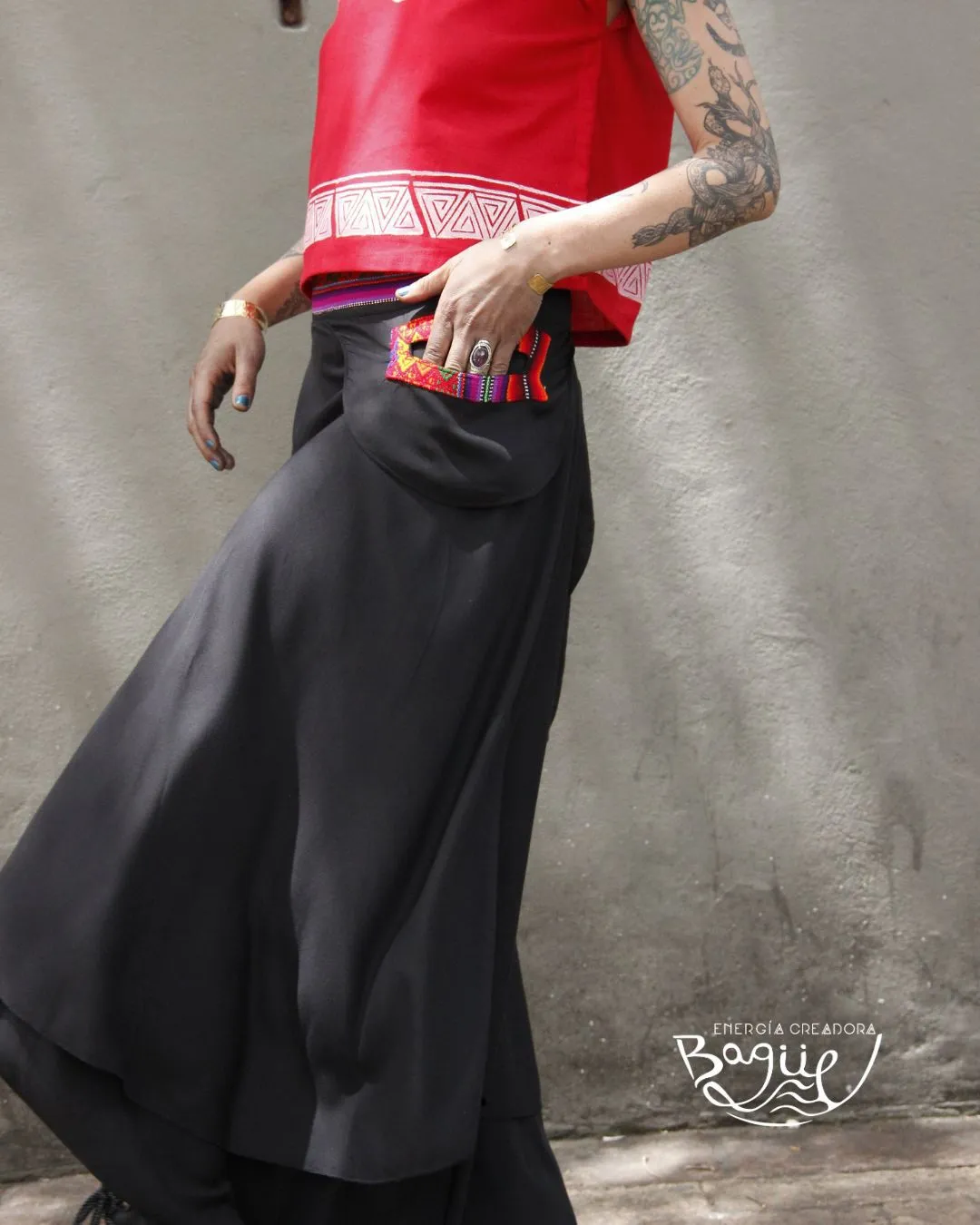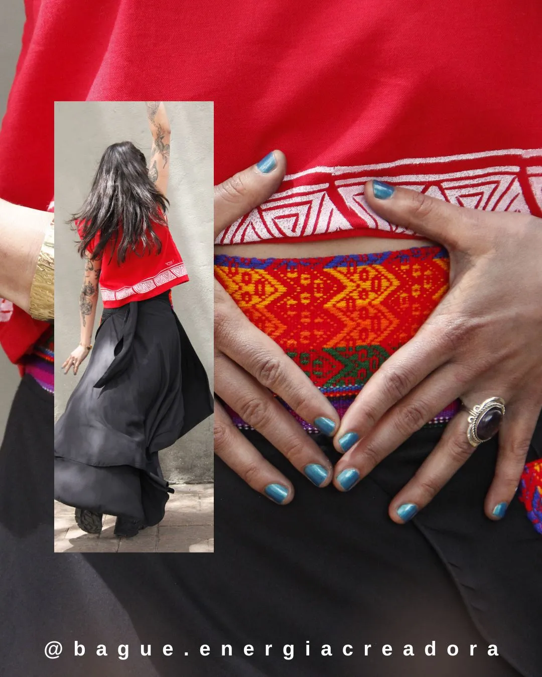 Detalles Rítmicos: Incluye un Chumbe en manta peruana (fibra sintética) y nuestro bolsillo interno exclusivo «YO SOY MEDICINA DE AMOR». El Chumbe tiene una profunda intención de sanación, ayudando a conectar con el útero y las memorias, siendo también medicina para aliviar los cólicos menstruales.