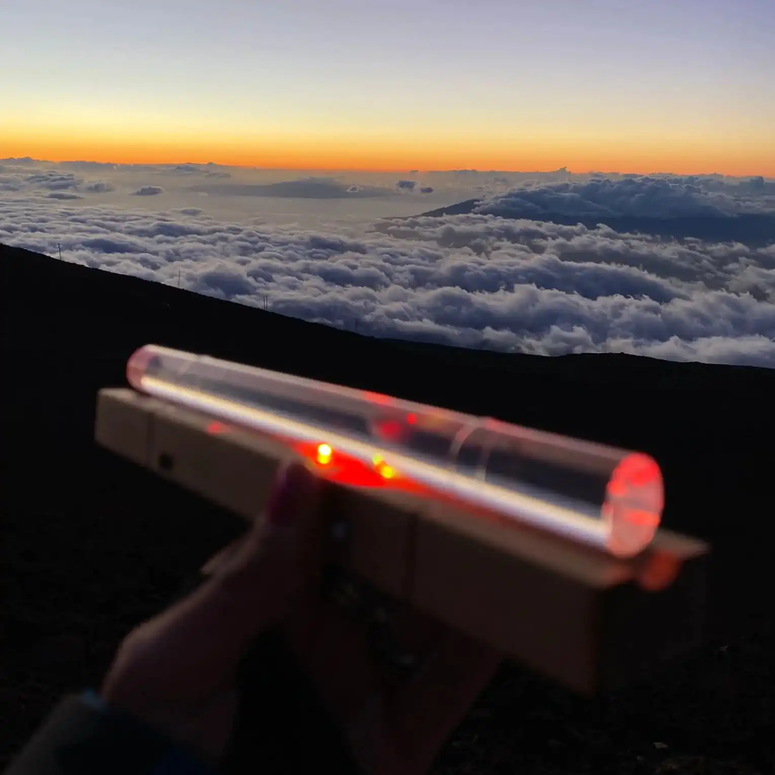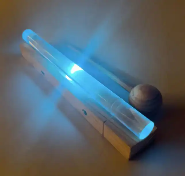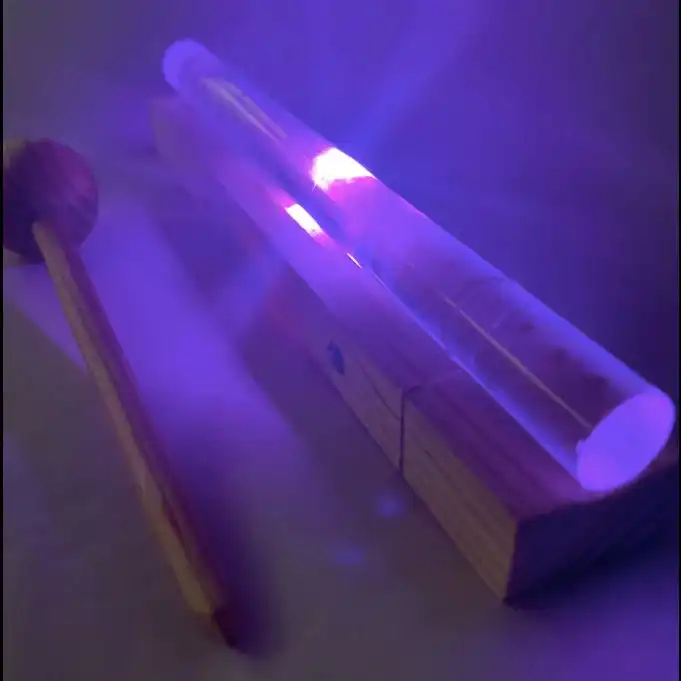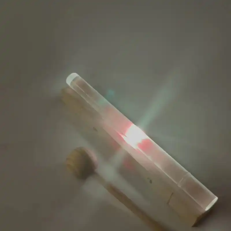 Fabricada con cuarzo cristalino macizo y con una longitud de 21.2 cm, la Vibra Rod está meticulosamente afinada en la nota Si. Su diseño incluye un sistema cromático que proyecta los 7 colores del arcoíris (como se ve en la segunda imagen), permitiéndote seleccionar el color de enfoque para cada intención o chakra.