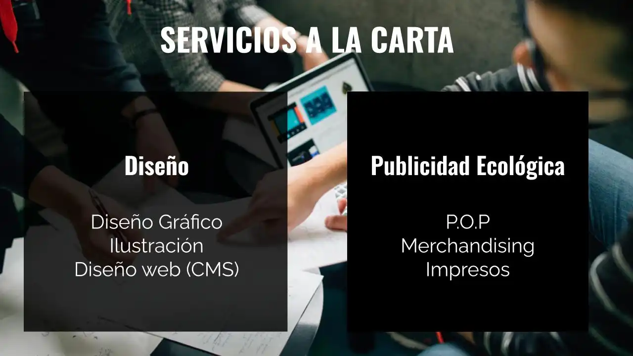4. Otros Servicios Publicitarios (Spirall): Servicios específicos como Diseño de identidad corporativa, Diseño de material POP, Campañas de Email Marketing e Impresión Ecológica.