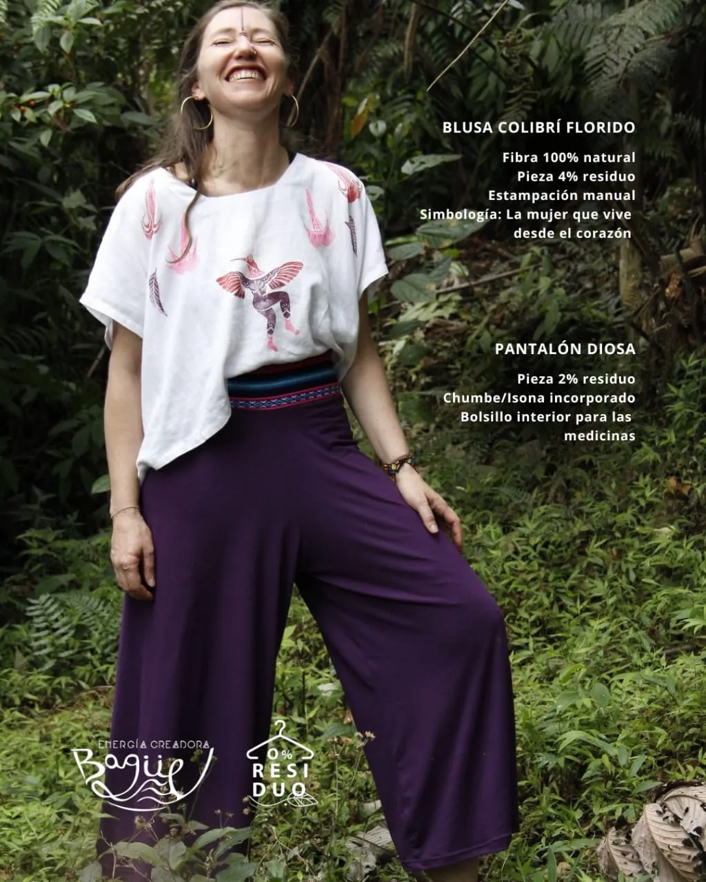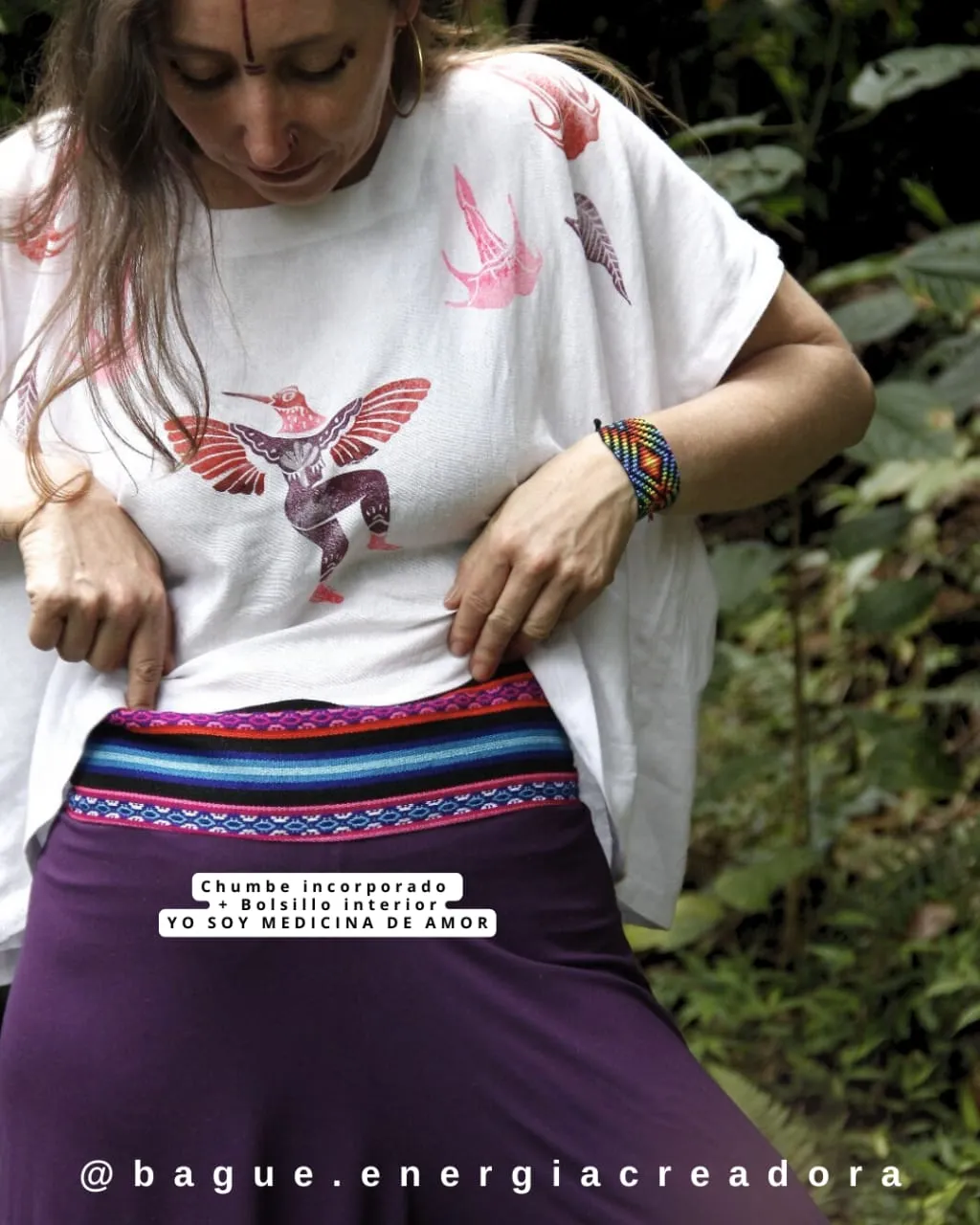 Pantalón Zero Waste ritual, diseño mariposa con Chumbe, ideal para ceremonias y menstruación.