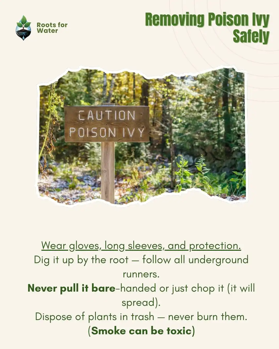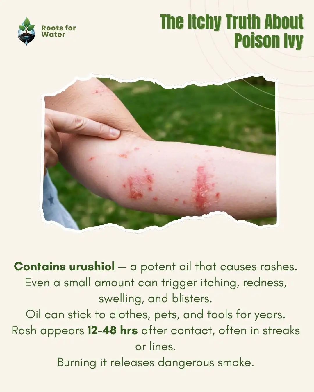 Esta guía informativa te ofrece la verdad detrás de la picazón de la Hiedra Venenosa (Poison Ivy), una planta nativa esencial del ecosistema de Norteamérica. Va más allá de ser solo una planta que pica, ya que sus bayas alimentan a aves como petirrojos (Robins), cálaos (Woodpeckers) y ampelis (Cedar Waxwings), y sus hojas son alimento para venados, conejos y otros mamíferos sin causarles daño. Sus raíces fuertes ayudan a prevenir la erosión en pendientes y sus pequeñas flores proporcionan néctar a abejas y polinizadores. Sin embargo, contiene urushiol, un potente aceite que causa erupciones (picazón, enrojecimiento, hinchazón y ampollas) que aparecen entre 12 y 48 horas después del contacto. Este aceite puede adherirse a la ropa, mascotas y herramientas durante años. Te proporcionamos las instrucciones claras para remover la Hiedra Venenosa de forma segura. Cualquier producto de apoyo para tu jardín provisto por Roots for Water sigue principios artesanales y naturales.