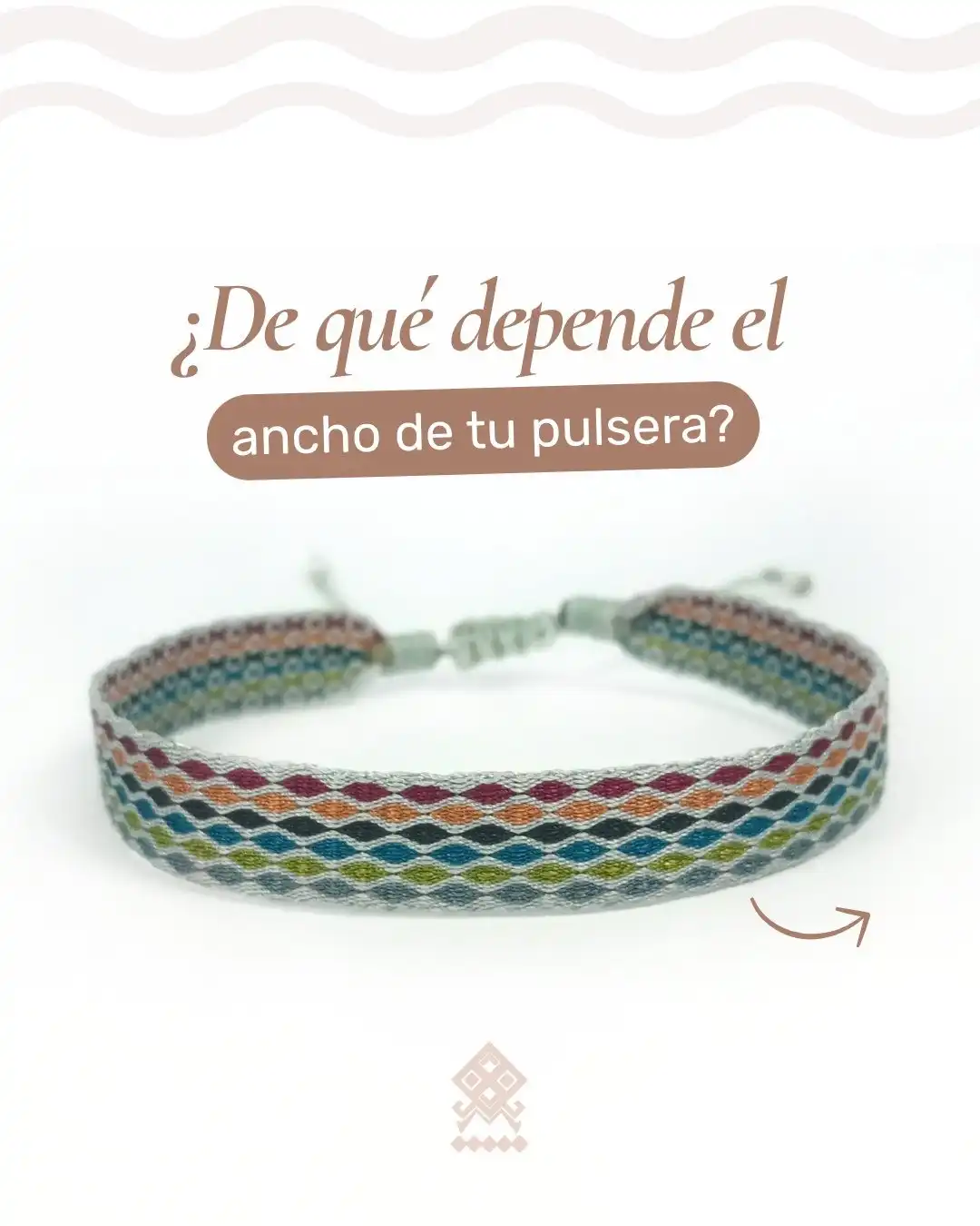 Atrae todas las miradas con esta cautivadora pulsera artesanal ancha, una verdadera celebración del color tejida a mano con maestría. La base grisácea del tejido sirve de lienzo para un vibrante patrón de óvalos u ondas entrelazadas en múltiples tonos, que incluyen toques de naranja quemado, azul turquesa y vino tinto. La combinación crea una estética bohemia y llamativa que evoca la riqueza de los textiles tradicionales. Su tejido es firme y cómodo, y cuenta con un cierre de macramé deslizable en hilo claro que garantiza un ajuste perfecto. Es el accesorio ideal para añadir un toque de color y personalidad a tu atuendo diario. Adquiere esta pieza única y luce la calidad, el arte y el valor inigualable de una creación genuinamente hecha a mano.