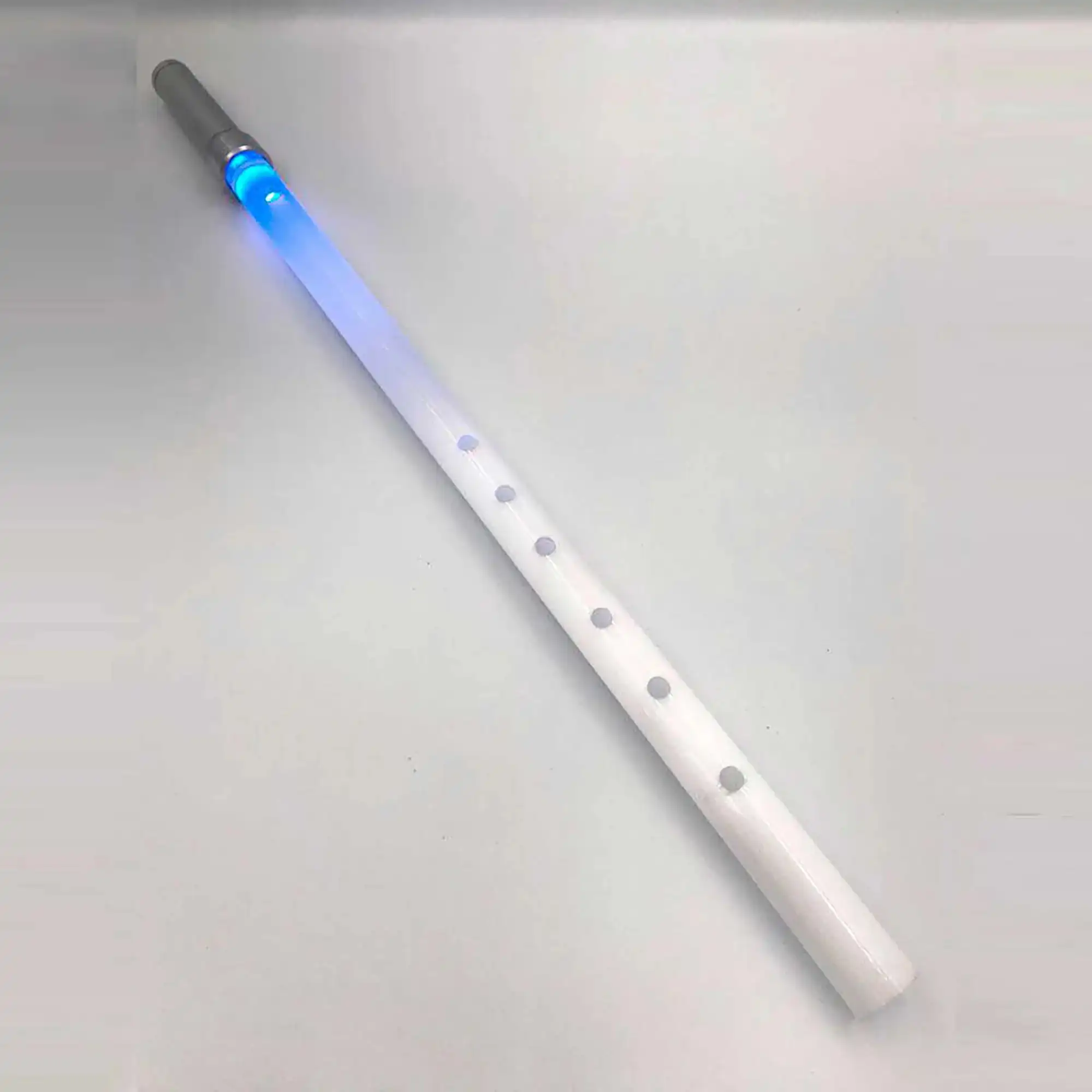 Flauta cromática de cuarzo con accesorio LED para alinear los siete chakras con color y sonido.