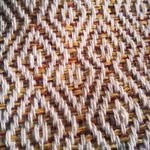 Tejido artesanal con patrón de rombos en crema y ocre. Auténtica tradición textil.
